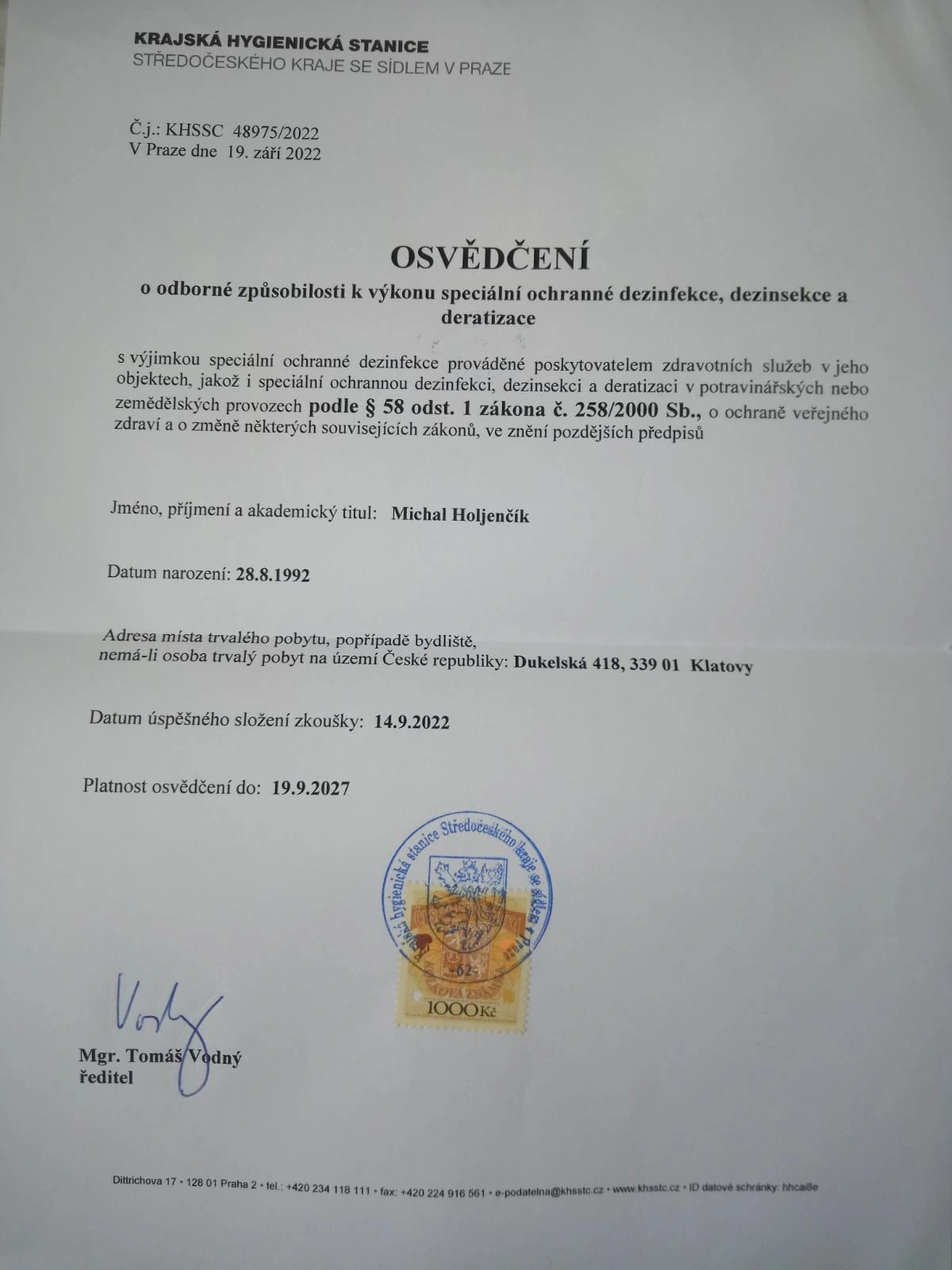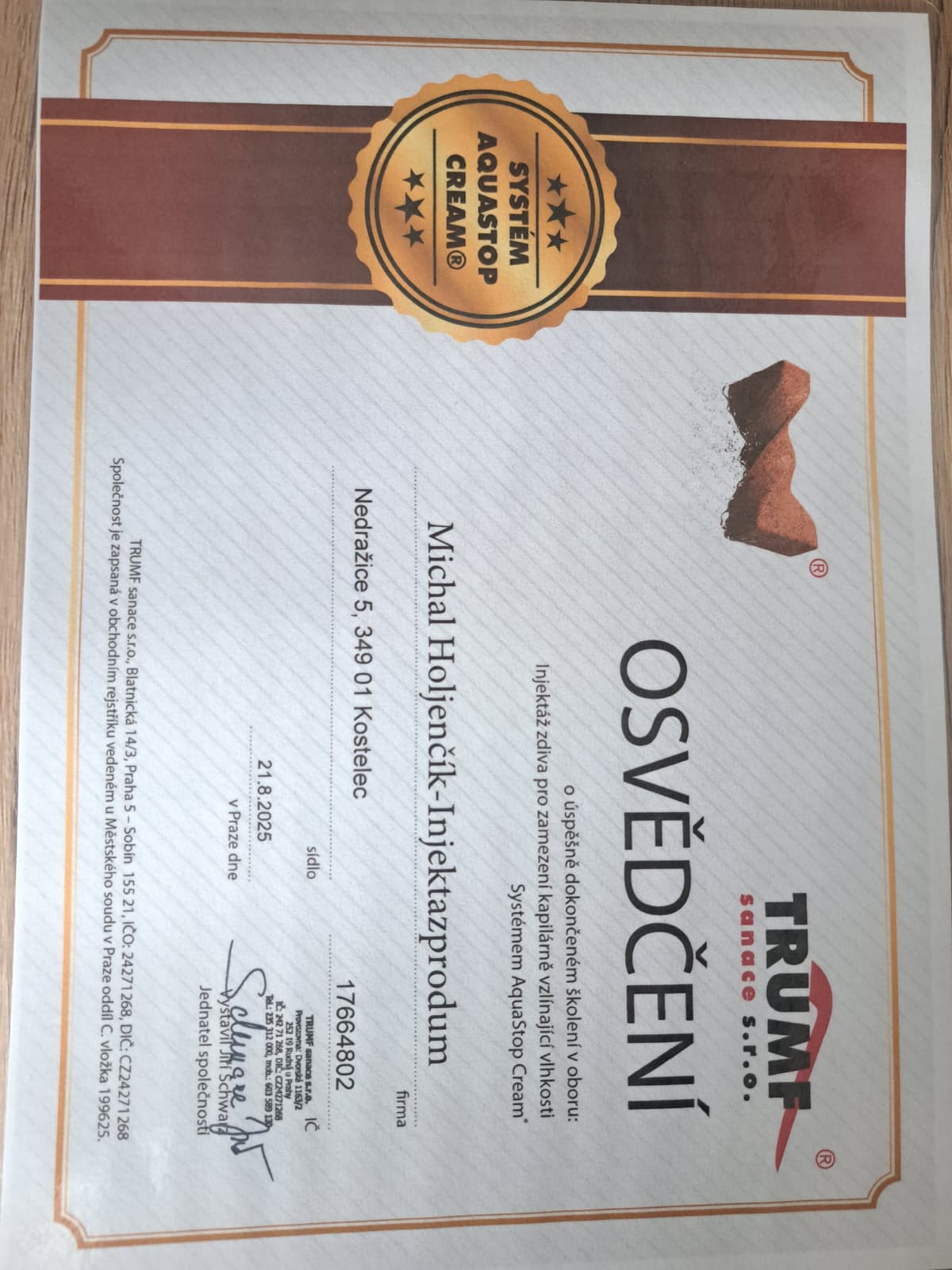.Jsme certifikovaným dodavatelem odborných sanačních prací.