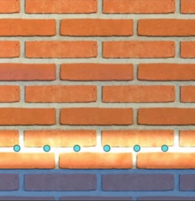 Po uzavření vrtů extrudovanými zátkami se spouští chemický proces, který zastavuje kapilární vzlínání vlhkosti.