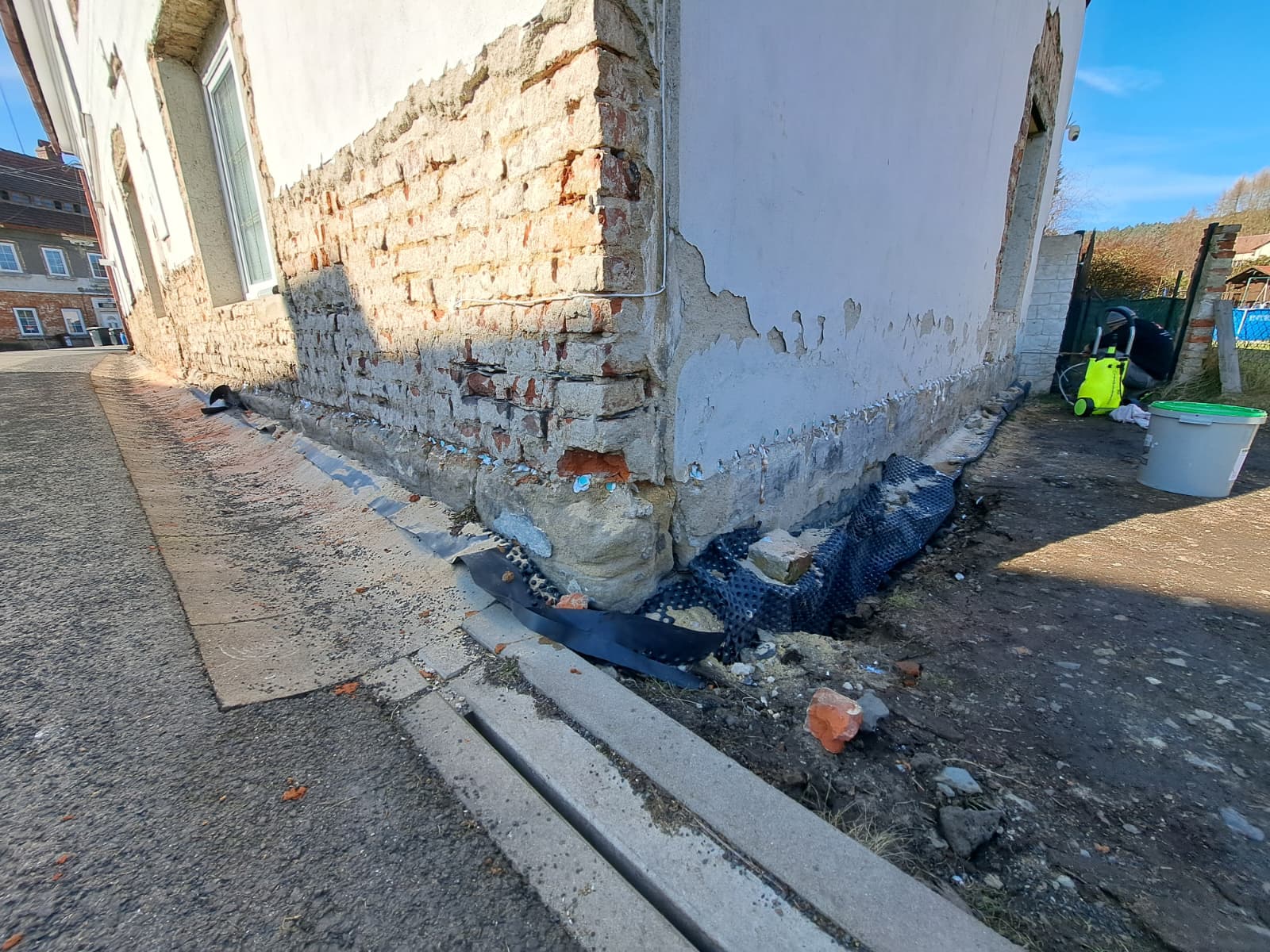 ⚠️Velmi důležité: provést před zateplením. Pokud se před zateplením neodstraní příčina zavlhání, vlhkost se po zateplení projeví ještě intenzivněji uvnitř a vznikají plísně (zdravotní riziko).