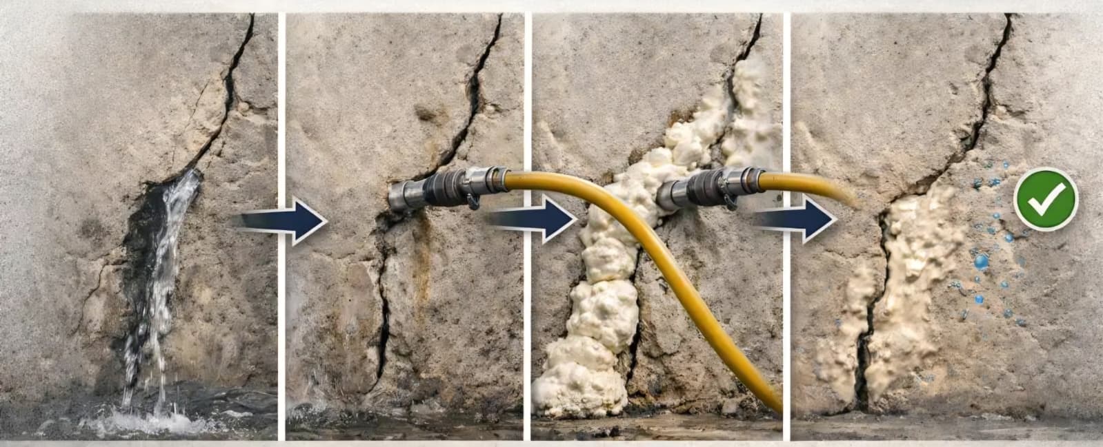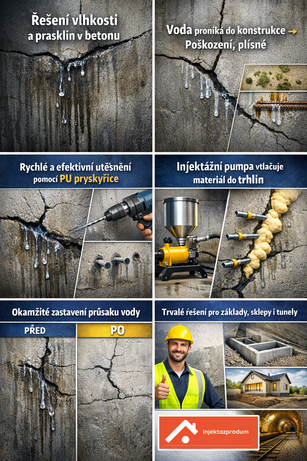 K zastavení tlakové vody a průsaků. K vyplnění nesourodého zdiva a prasklin ve zdivu.