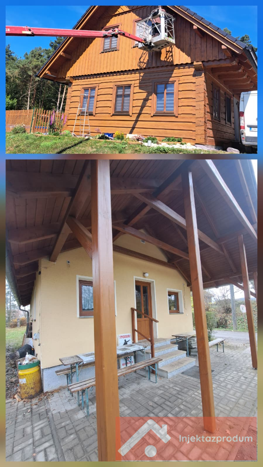 Vždy je důležitý aktuální daný stav povrchu dřeva. Vše důkladně zkontrolujeme a navrhneme řešení na míru. Dřevo je velmi krásný materiál, ale bohužel i náchylný ke korozi. Poznáte to na místech, které jsou zčernalé a zešedlé. Přírodním jevem působícím od slunce, deště a větru se vyskytují i problémy s praskající lazurou. Nastupuje koroze dřeva. Používáme pouze 100% přírodní materiály a disponujeme veškerým vybavením k opravě takových míst. Oživíme Vaši dřevostavbu, roubenku či srub. Máme širokou nabídku odstínu je to jen na Vás.